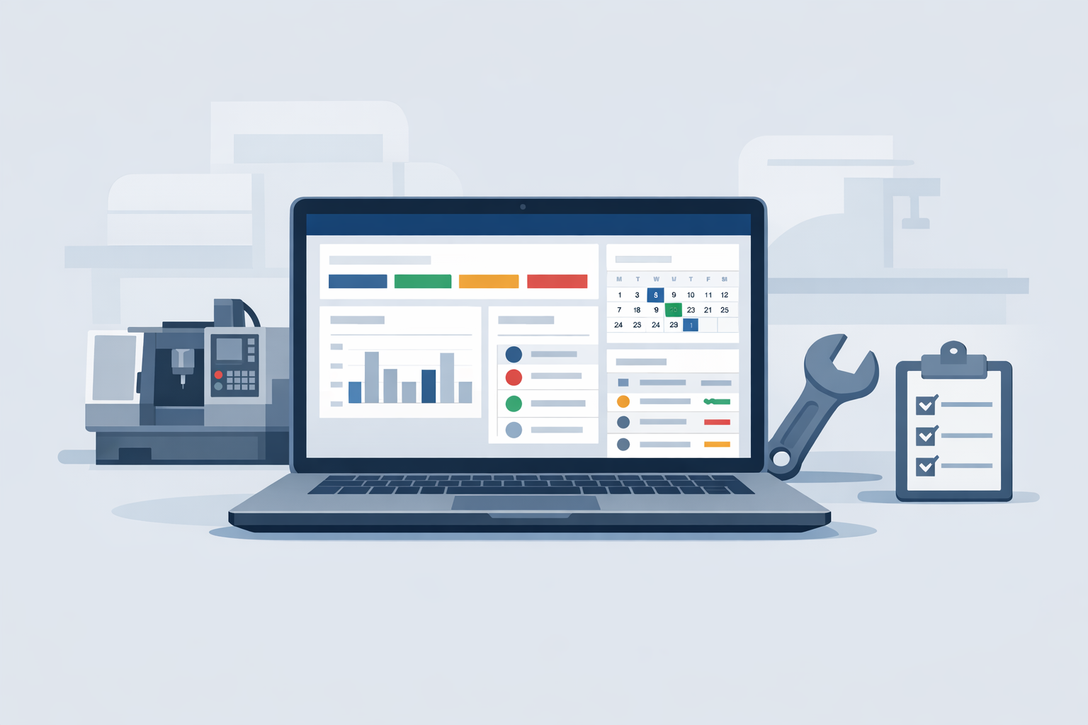 Ten przewodnik pokazuje, jak podejść do wdrożenia CMMS krok po kroku w małej lub średniej firmie. Bez nadmiaru teorii, bez obietnic „szybkiej transformacji”, za to z praktycznym podejściem do planu wdrożenia, danych, konfiguracji i uruchomienia pracy zespołu. Jeśli zastanawiasz się, jak wdrożyć CMMS tak, żeby zespół go przyjął, a nie tylko „miał dostęp”, ten materiał jest dla Ciebie.